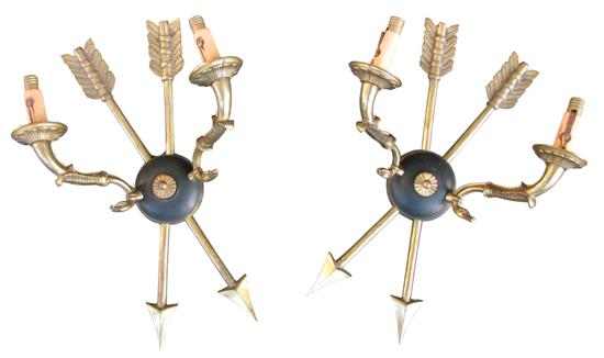 A PAIR OF FRENCH CROSSED ARROW WALL SCONCES, c. 1950s