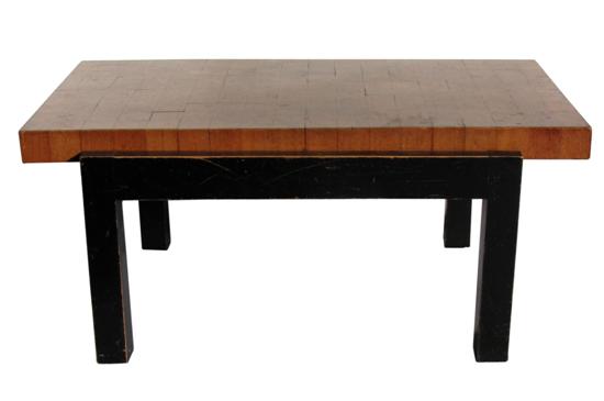 A FRENCH PARQUET TOP COFFEE TABLE, c. 1950s