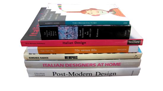 Including; Italian Design; Art and Architecture in Italy (1600-1750); Alessi, Alberto 'The Dream Factory; Radice, Barbara 'Memphis'