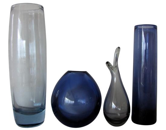 A COLLECTION OF FOUR HOLMEGAARD GLASS VASES