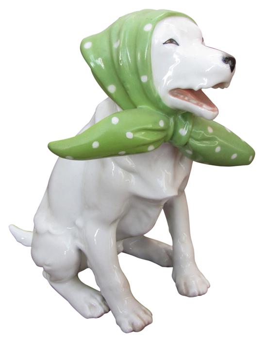 A FRENCH CERAMIC FIGURINE OF A DOG