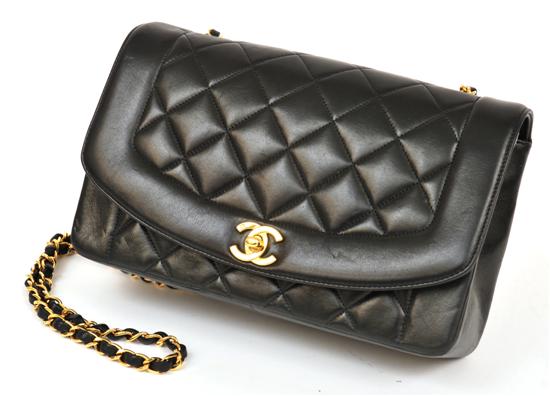 Styled in black lambskin with gold metal clasp and convertible woven leather chain strap, serial number 3406372, 25 x 16 x 7.5cm.