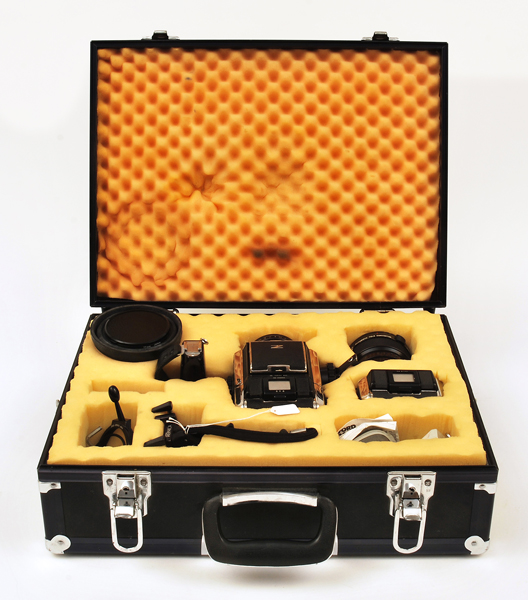 CASED ZENZA BRONICA, BLACK, ZENZANON MC LENSE 1:2.4 F=80MM, 801672. WITH 2 X VIVITAR AUTOMATIC TELE CONVERTER, FLASH UNIT CM 51141, HOYA 77MM LENSE UV(O), GRIP AND OTHERS (E CASE E-M)