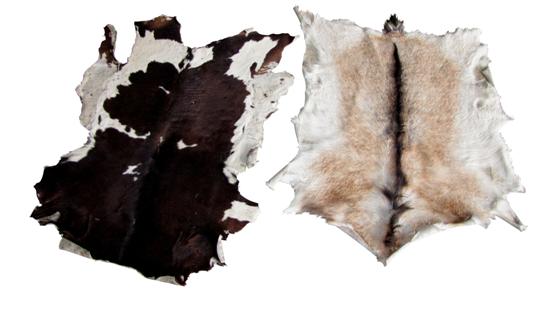 One goat hide, one calf hide