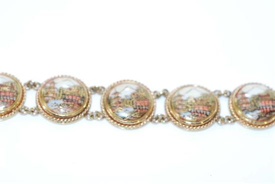 Comprising six satsuma panels, to chain fittings, in 14ct gold, total length 185mm.
