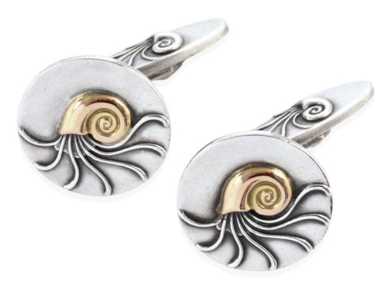 Designed by Henry Pilstrup, with raised gold shell design, in sterling silver, to t-bar fittings, reference 52.