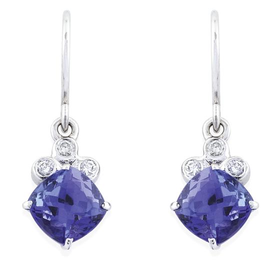 A PAIR OF TANZANITE AND DIAMOND EARRINGS
