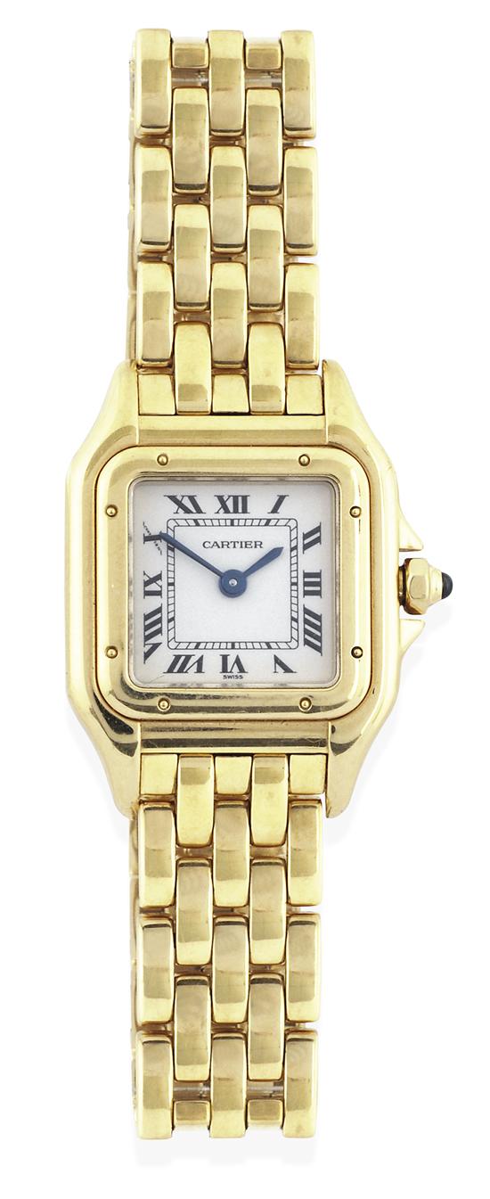 A LADIES GOLD CARTIER PANTHERE WRISTWATCH