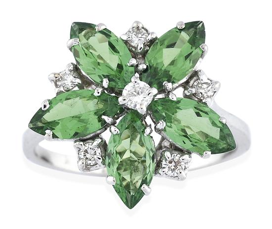 A TSAVORITE GARNET AND DIAMOND DRESS RING