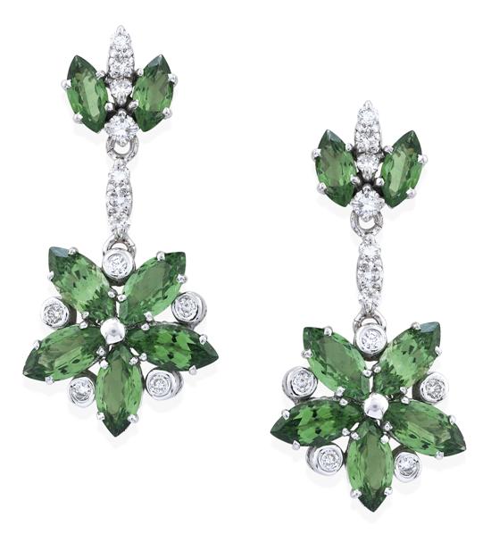 A PAIR OF TSAVORITE GARNET AND DIAMOND EARRINGS