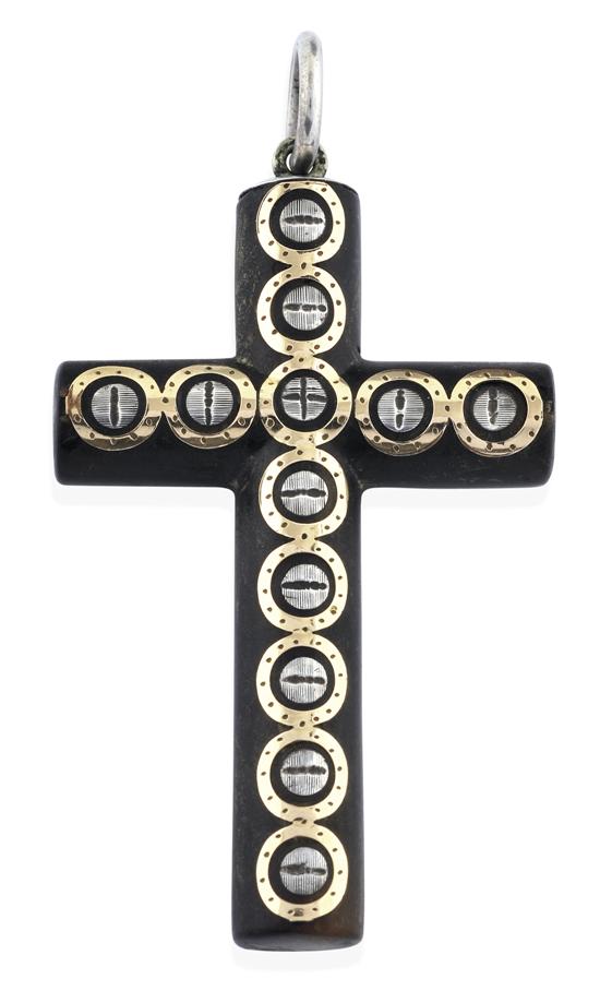 The tortoiseshell cross with fine silver and gold inlay, circa 1890.