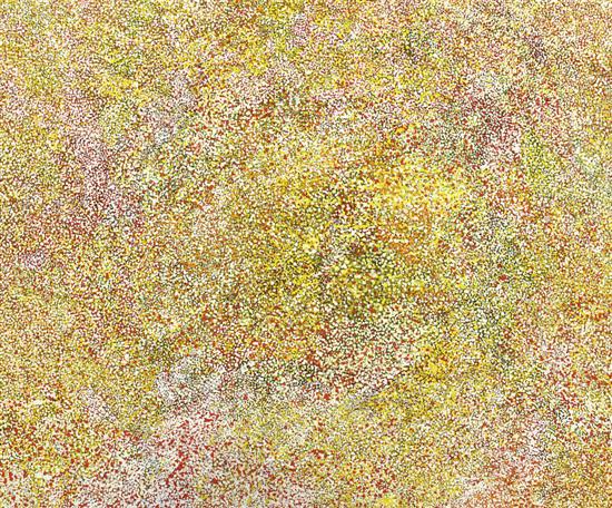inscribed 'PROJECT POLLY NGAL BUSH PLUM COUNTRY/ PAINTED OCTOBER 02' verso