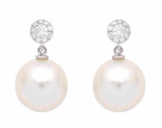 A PAIR OF SOUTH SEA PEARL AND DIAMOND EARRINGS