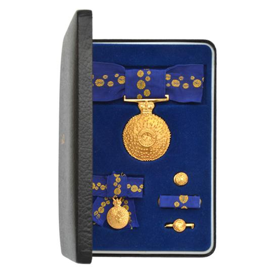 engraved to reverse 'HELLEN LYNNETTE BATES', including miniature, brooch, lapel pin and ribbon, in fitted case