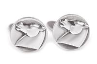 The circular discs with stylized horse head motif to t-bar fittings in sterling silver, reference 63.