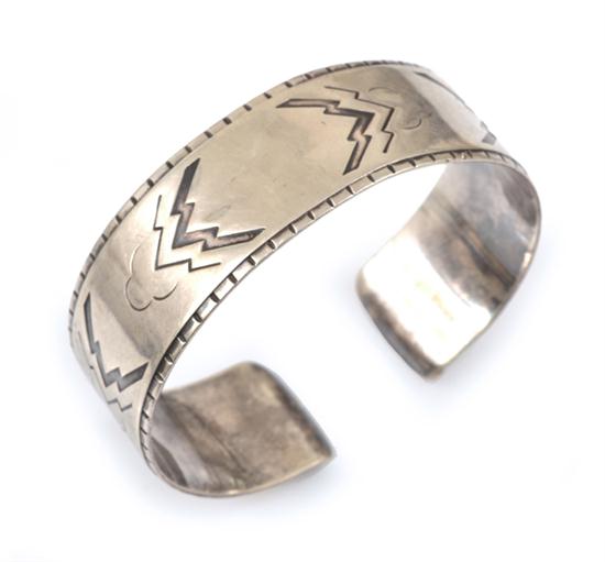 The wide cuff with engraved and chased decoration in sterling silver, style reference 38.