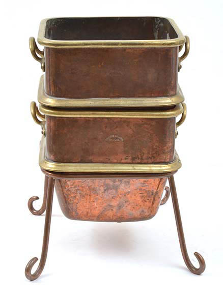 A MELBOURNE MANUFACTURED COPPER AND BRASS BAIN MARIE