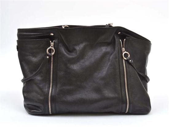 Styled in black leather with silver metal hardware, 52 x 32cm.