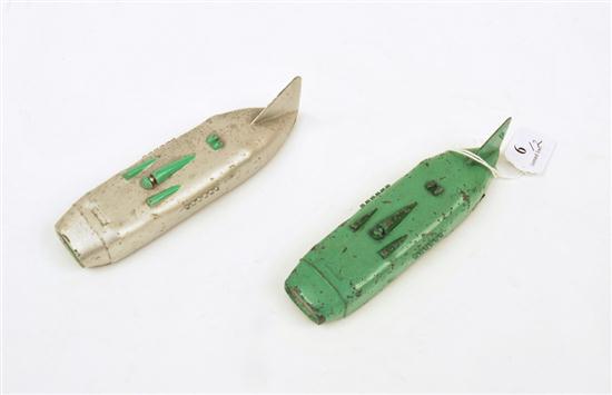 TWO DINKY 23M THUNDERBOLT LANDSPEED CARS, ONE SILVER WITH LIGHT GREEN TRIM; AND ONE APPLE GREEN WITH MID GREEN TRIM, BOTH UNBOXED (F-G) (2)