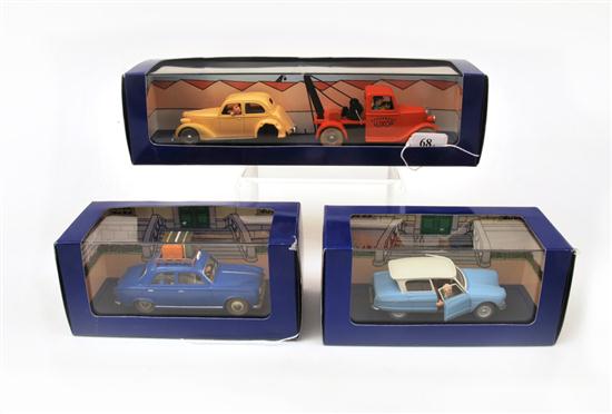 THREE EN VOITURE TINTIN FIGURES FROM TINTIN COMICS INCLUDING 19653 REF 118 024; AND 2 X 1963 REF 118 014 AND REF 118 035 (M BOXES E-M) (3)