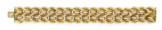 Of triple rope twist design with polished interconnecting links in 18ct yellow and rose gold, total weight 38.7gms, total length 18.8mm.