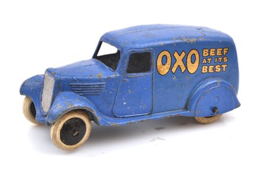 type 2, blue with gold transfers to sides 'Beef At It's Best' and 'Beef In Brief', smooth black hubs, white tyres (G)