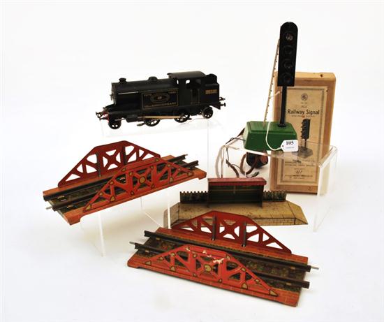 BOXED SEL NO.730 RAILWAY SIGNAL, HORNBY 10TH ANNIVERSARY LOCO WITH KEYS, METTOY TRACKS AND OTHERS (P-VG BOX VG) (LOT)