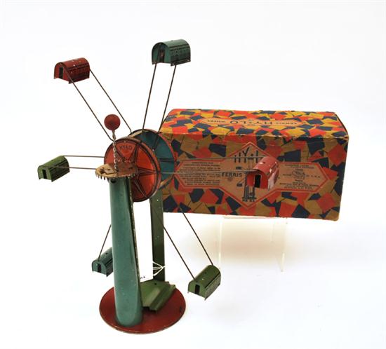 HY-LO NO.53 FERRIS WHEEL WITH 6 ILLUSTRATED LITHOGRAPHED CAGES AND FUNCTIONING MECHANISM (F-G BOX F-G)