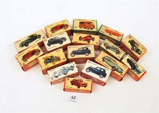 SIXTEEN ANGUPLAS SERIES 1 AND F MINI CARS INCLUDING FERRARI; ALFA ROMEO; FIAT 1500; CITROEN 5 H.P.; ETOILE FILANTE RENAULT; BUGATTI; AND OTHERS, ALL BOXED (E-M BOXES G-M) (16)