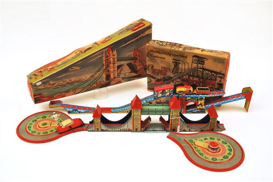 TWO TECHNOFIX TINPLATE MODELS INCLUDING 277 MECHANICAL TOWER BRIDGE; AND 294 MECHANICALLY OPERATED COALMINE (E-M BOXES F-G) (2)