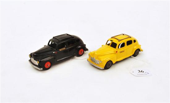 TWO TEKNO TAXIS INCLUDING ONE YELLOW; AND ONE BLACK, BOTH UNBOXED (G-E) (2)