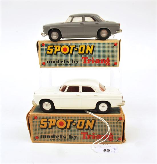 TWO SPOT-ON 157 ROVER 3 LITRE MODELS, ONE GREY WITH DETACHED CORNER OF REAR BUMBER; AND ONE WHITE, TOUCHED UP, WITH RED INTERIOR (G-VG BOXES F-G) (2)