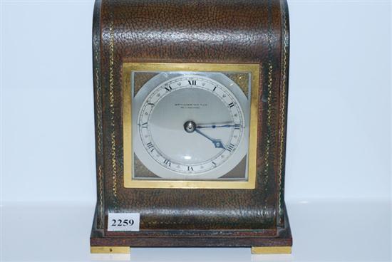 A W DRUMMOND & CO. MANTEL CLOCK IN EMBOSSED LEATHER