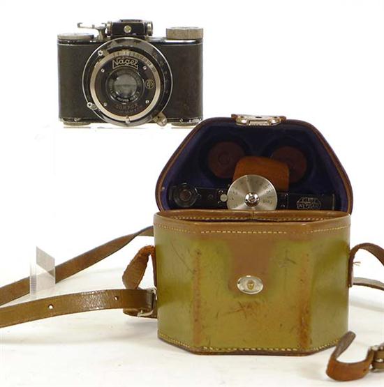 NAGEL CAMERAWERK PUPILLE, CIRCA 1930S, WITH LEITZ ELMAR F/3.5 LENS AND LEITZ RANGE FINDER WITH COUPLING IN FITTED CASE