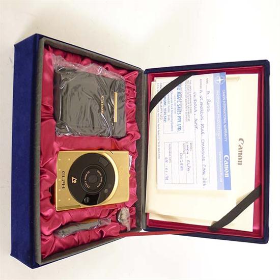 LIMITED EDITION GOLD PLATED CANON ELPH IX240, INCLUDING BLUE VELVET BOX AND OUTER BOX