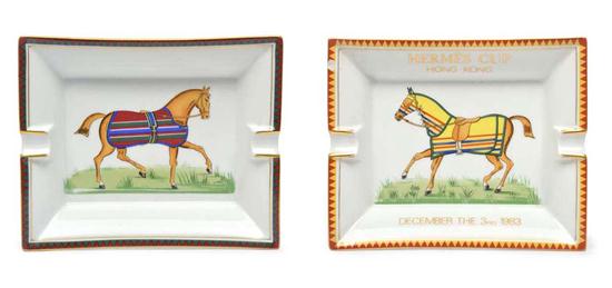 TWO HERMES PORCELAIN HORSE THEMED CIGAR ASHTRAYS