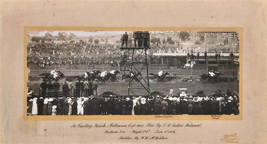 PHOTOGRAPH OF THE FINISH OF THE 1917 MELBOURNE CUP