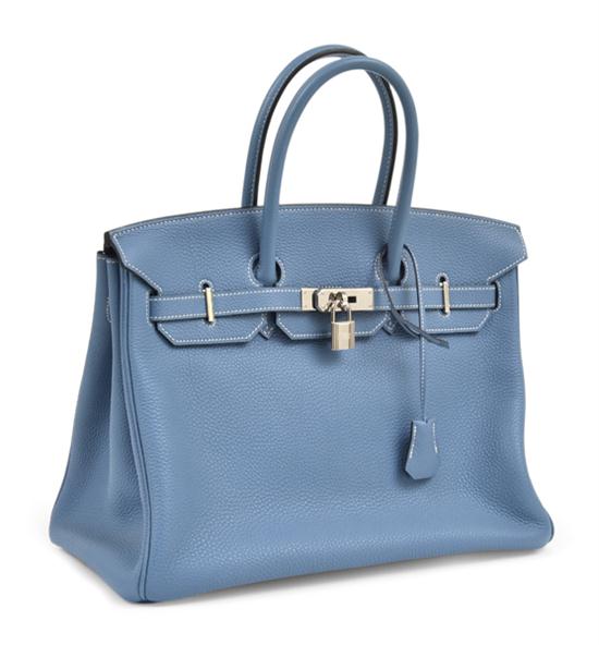 The handbag styled in Blue Jean Togo leather with Palladium metal hardware, 35cm.