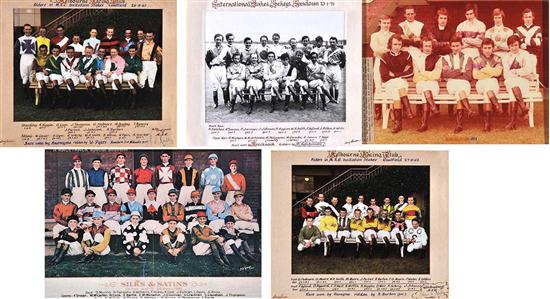 FIVE GROUP PHOTOGRAPHS OF JOCKEYS