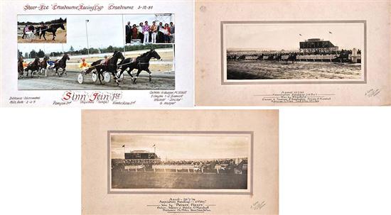 THREE PHOTOGRAPHS OF FINISHES OF VICTORIAN TROTTING RACES