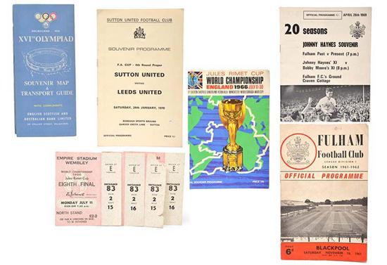 11 July, 1966; four used tickets to 'Eighth Final' (England v. Uruguay); three other 1960s-1970s English football programmes; and a 1956 Olympics souvenir map (a lot)