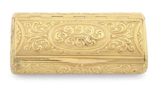 Decorated with scroll and foliate design in relief, with inscription to the interior lid 'Manuela a su querido Forbes', hallmarked London 1803-4, total weight 96.1gms, 8 x 4cm.