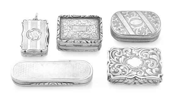 FIVE ASSORTED ANTIQUE STERLING SILVER VINAIGRETTES