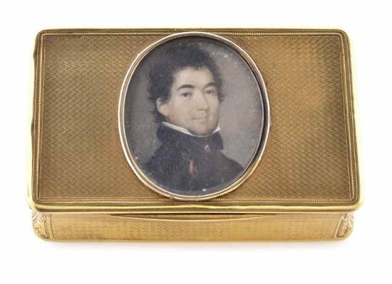 A GOLD PORTRAIT MINIATURE TRINKET BOX