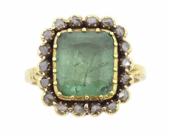 AN ANTIQUE EMERALD AND DIAMOND CLUSTER RING