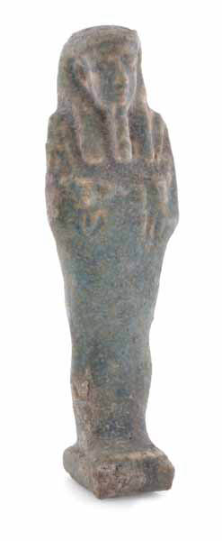 AN ANTIQUE GLAZED EGYPTIAN TOMB FIGURE - The male mummified figure in a turquoise coloured glaze.