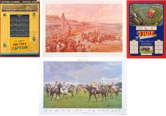 one of Herbert Woodhouse's watercolour 'Melbourne Cup 1900'; one of the 'The Melbourne Cup 1980' painting signed by Roy Miller; and Capstan Calendar and sporting Record; and one other, framed (4)