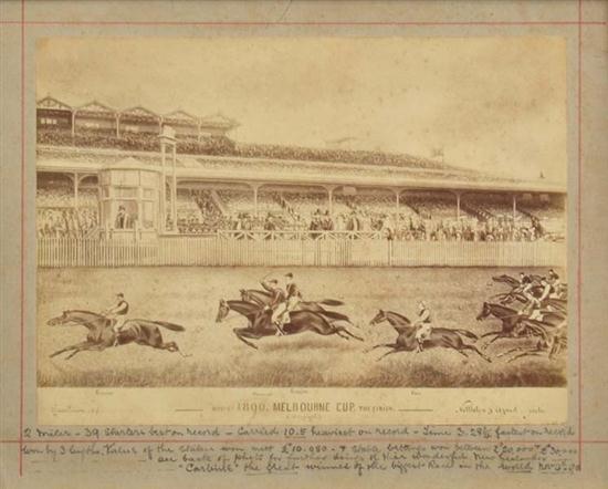 ALBUMEN PHOTOGRAPH OF DRAWING OF 1890 MELBOURNE CUP FINISH