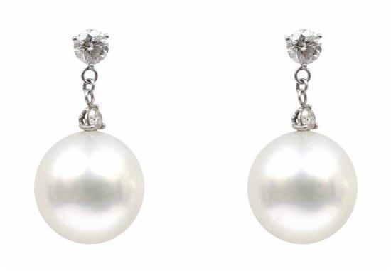 A PAIR OF SOUTH SEA PEARL AND DIAMOND EARRINGS BY PASPALEY