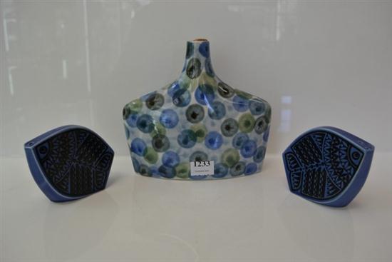 A PAIR OF HORNSEA FISH SALT AND PEPPER SHAKERS TOGETHER WITH A BOTTLE